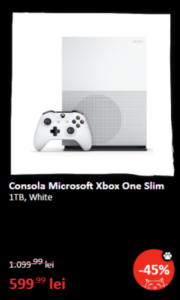 - Consola Microsoft Xbox One Slim la doar 600lei – pe care am reusit sa o prind si eu. Am facut un review complet aici – aici gasiti produsul
