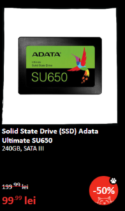 - Solid State Drive SSD Adata – SU650 – 240GB – produs pe care l-am achizitionat si eu – link catre produs